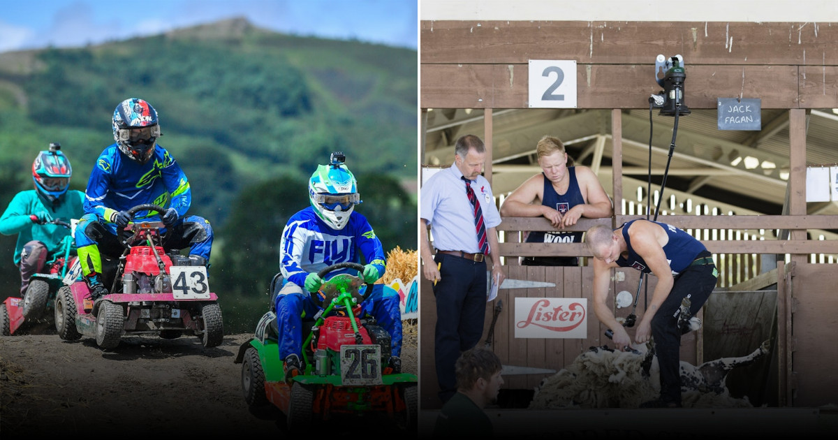 As corridas de cortadores de grama, que começaram em 1973, tiveram origem em um grupo de entusiastas de velocidade reunidos em um pub no Oeste de Sussex. O objetivo era tornar o automobilismo acessível ao grande público. Hoje, a modalidade é organizada pela British Lawnmower Racing Association (BLRA) e compreende 30 corridas que ocorrem de maio a outubro. A maior parte das competições ocorre em grandes eventos rurais, como a feira em Cranleigh, Surrey. A BLRA não busca lucro e destina todos os fundos arrecadados para caridade, pedindo que o público traga seus próprios lanches.