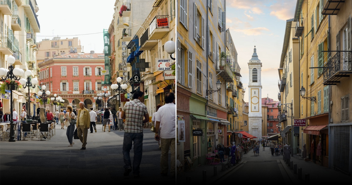 A Vieux Nice é o coração pulsante da cidade, uma área vibrante que atrai muitos turistas. Com suas ruas estreitas repletas de lojas e restaurantes, além de monumentos históricos, o bairro é inconfundível. Entre as atrações locais, destacam-se a chocolateria Maison Auer e a adega Cave de la Tour. Cada edificação nesse bairro, caracterizada por suas fachadas em tons pastel, contribui para um ambiente encantador. A praça central, Cours Saleya, é famosa por seus mercados de frutas e flores, funcionando de terça a sábado. Os hotéis da região vão de acomodações particulares a opções mais luxuosas, como o Hôtel du Couvent, que reabriu em 2024 após uma reforma meticulosa de um antigo convento.