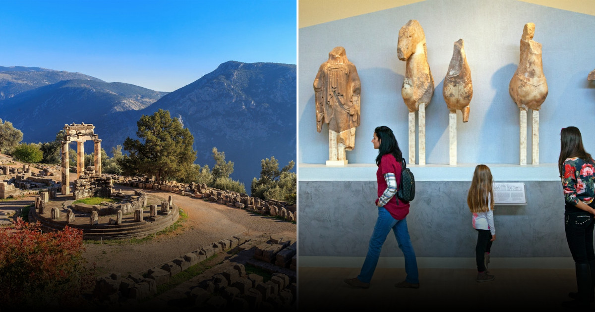 O museu de Delphi preserva artefatos como figuras de bronze, estátuas de Apolo, o Guerreiro de Bronze, além de esculturas e peças que retratam a riqueza artística do antigo santuário, oferecendo uma compreensão aprofundada da sua história e cultura.