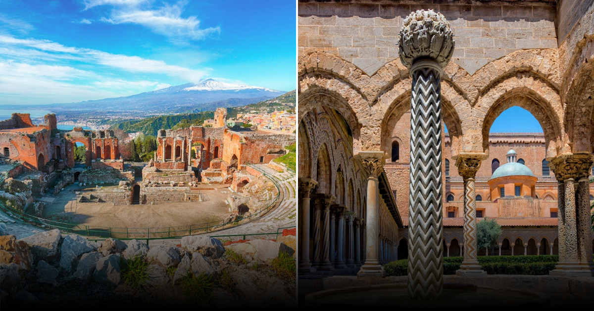 A exploração dos mosaicos da UNESCO na ilha revela uma infinidade de lendas e mitos. No Monastério de Monreale, construído em 1184 pelo rei Guilherme II, encontram-se magníficos mosaicos bizantinos que ilustram deuses, criaturas africanas, cenas bíblicas e mitológicas, incluindo animais exóticos e figuras olímpicas. Próximo de Agrigento, na Villa Romana del Casale, uma antiga residência de patrícios romanos, também é possível admirar mosaicos impressionantes, representando cenas da vida cotidiana e mitológica.