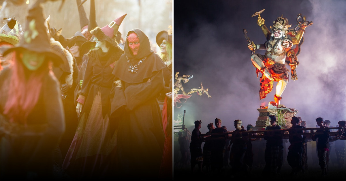 No Bali, durante o Festival Nyepi, a ilha para para reflexões. Na véspera, desfiles mostram enormes bonecos demoníacos que são posteriormente incinerados, simbolizando a purificação e a eliminação de características negativas.